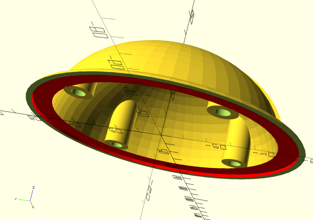 As I’ve alluded to in the past, I’m in the middle of making a [REDACTED] for [REDACTED] this year, which calls for a 3D model for printing. I’ve tried so many different tools, open source and proprietary, and OpenSCAD is the first one that I’ve worked with that worked for me in a way that I understand. I know that other tools are likely far more capable, but so far I haven’t run into any limits of OpenSCAD. I parameterized every size so that I could tweak it and keep up with the math a bit more easily, and the OpenSCAD syntax makes this super easy. This particular model is meant to look like a hard hat, so let’s talk about the model and the code (yes, it’s code), and the process I went through to get there.