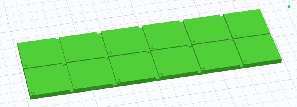 In this model I’m making n swatches separated by 3mm boundaries. I’m also labeling the swatches to help track experiments as I go. I’m going to be testing some new paint markers on these.